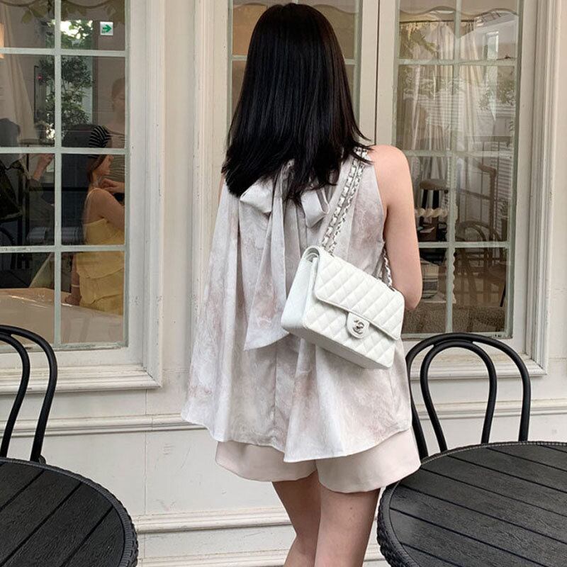 マーブル柄の美しいデザインが目を惹く、バックリボンブラウス。上品な印象を与える2色展開で、幅広いコーディネートにマッチします。女性らしいリボンディテールが後ろ姿を華やかに演出し、着るだけでおしゃれ度UP!クラシカルな印象ながらも、程よいトレンド感も漂わせる一着です。